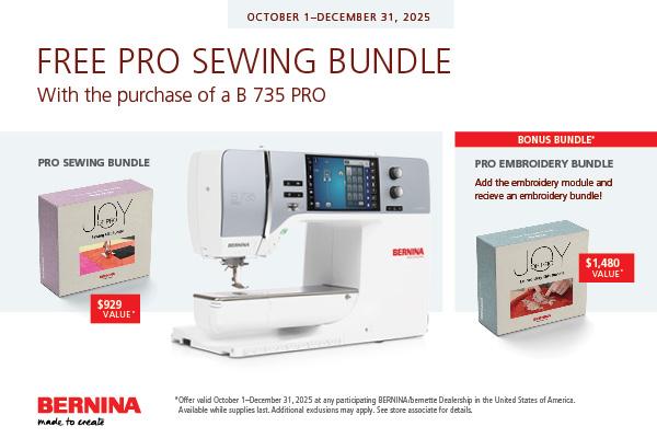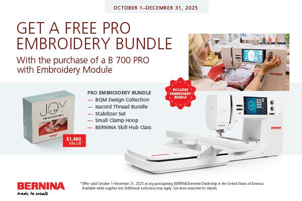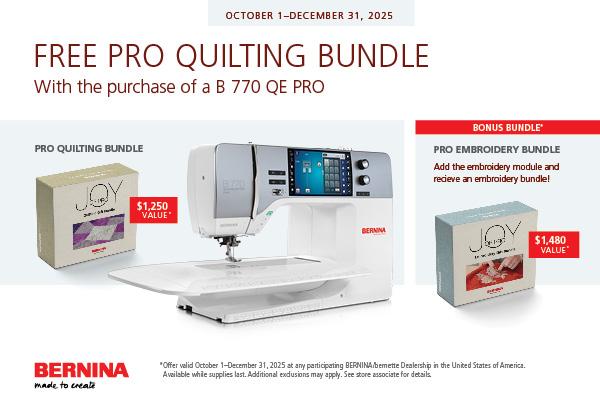 ** Offer valid May 1-31, 2025 at Top Shelf Quilts, a participating BERNINA/bernette Dealership in the United States of America. Available while supplies last. Exclusions may apply. See store associate for details.