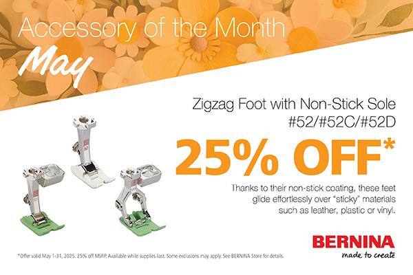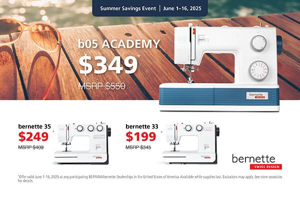 ** Offer valid May 1-31, 2025 at Top Shelf Quilts, a participating BERNINA/bernette Dealership in the United States of America. Available while supplies last. Exclusions may apply. See store associate for details.