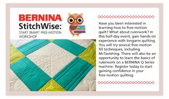 BERNINA StitchWise: Start Smart Free-Motion Workshop PM