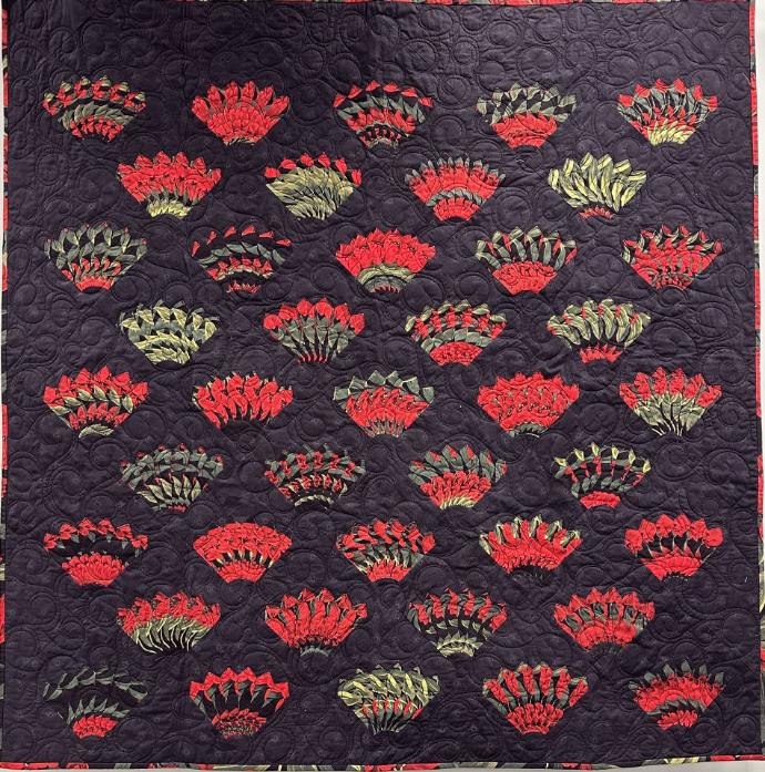The first time I pieced fan wedges from a stack of identical layers of a large colorful print fabric, I was hooked! Five straight seams and the fan unit was complete - no points to match and no centers to fuss over. Each block presents a new opportunity to play with fabric combinations, bringing order out of happy chaos. All of the designs in the project section will be worked in planned color combinations. Whatever your choice of fabrics, techniques and setting, I know you'll love the magic of making quilts by the slice. Each one is unique depending on your fabric choice - making it a one-of-a-kind work of art! So, join us at Top Shelf Quilts to make this fun quilt.