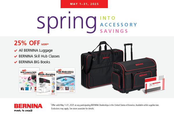 ** Offer valid May 1-31, 2025 at Top Shelf Quilts, a participating BERNINA/bernette Dealership in the United States of America. Available while supplies last. Exclusions may apply. See store associate for details.