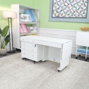 Kangaroo & Joey is a signature full-size sewing cabinet by Kangaroo Sewing Furniture featuring a 3-position hydraulic lift, an expansive worksurface for large quilting projects, and a rolling storage caddy (Joey Storage Cabinet) for dynamic sewing and crafting storage! Kangaroo & Joey sits on heavy-duty casters for easy mobility and increased stability, and features a collapsible quilt leaf to keep large quilting projects from falling to the floor! Kangaroo & Joey is the perfect addition to your growing sewing studio!